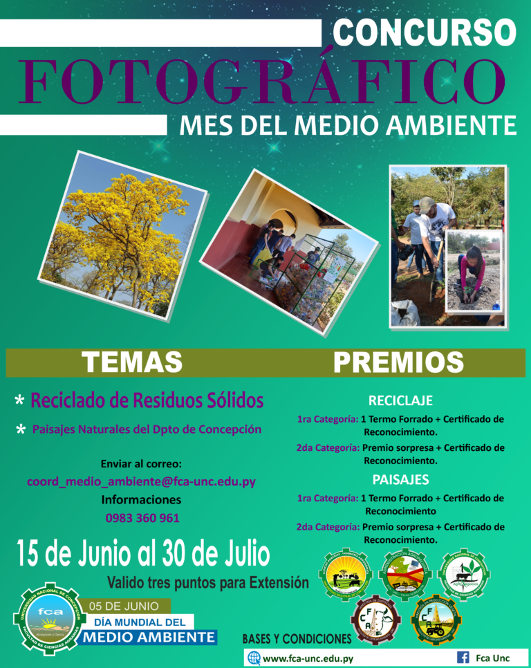 La coordinación de medio ambiente invita a todos los alumnos de la FCA a participar del “concurso fotográfico mes del medio ambiente” . Envia tus fotografías si colaboras reciclando en tu hogar o si sos amante por los paisajes de nuestro bello departamento!!
